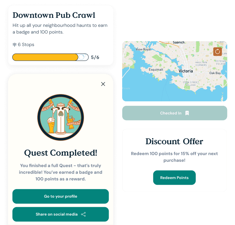 Rally visitors with gamified loyalty programs featuring redeemable points and a dynamic leaderboard.