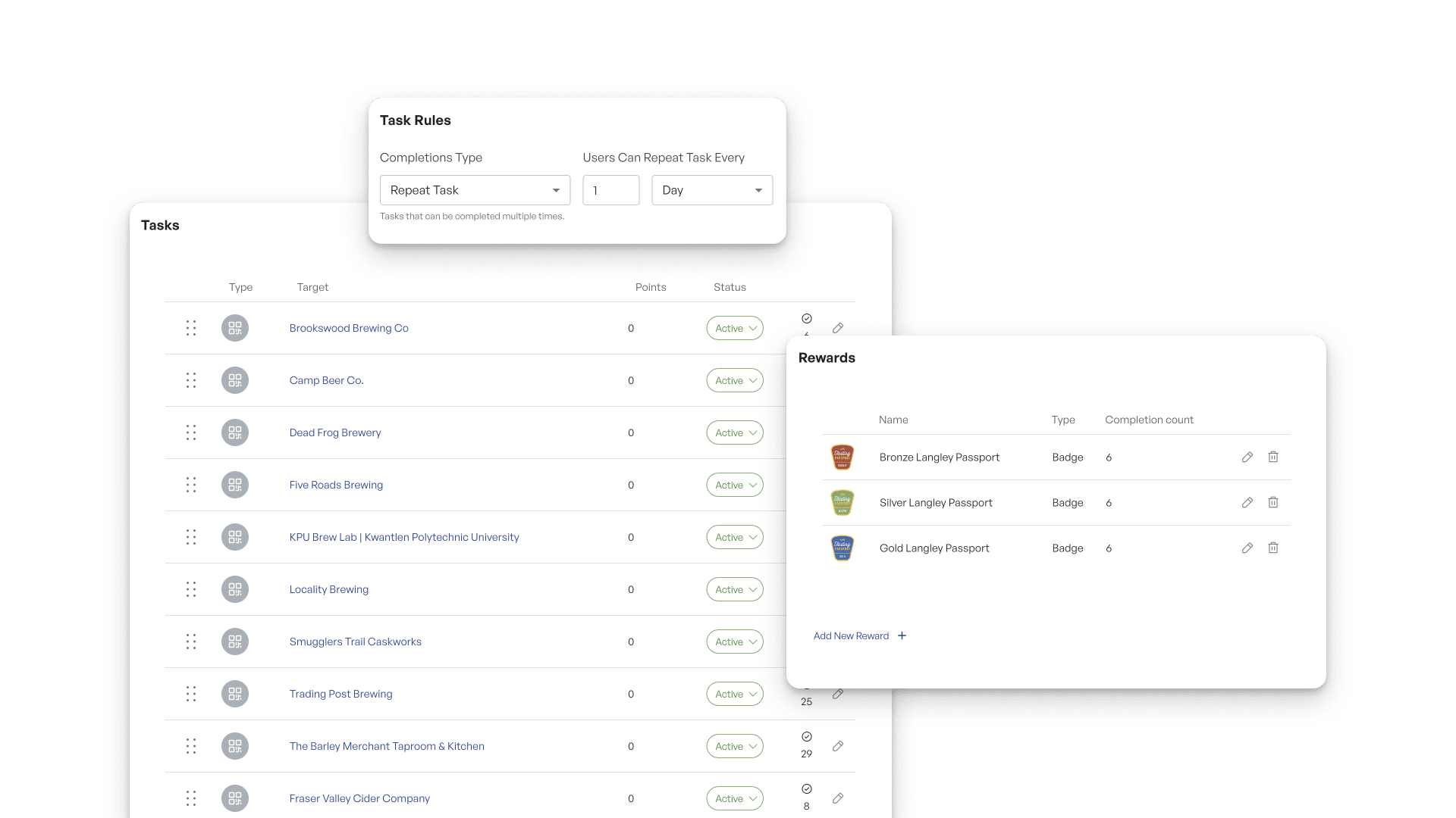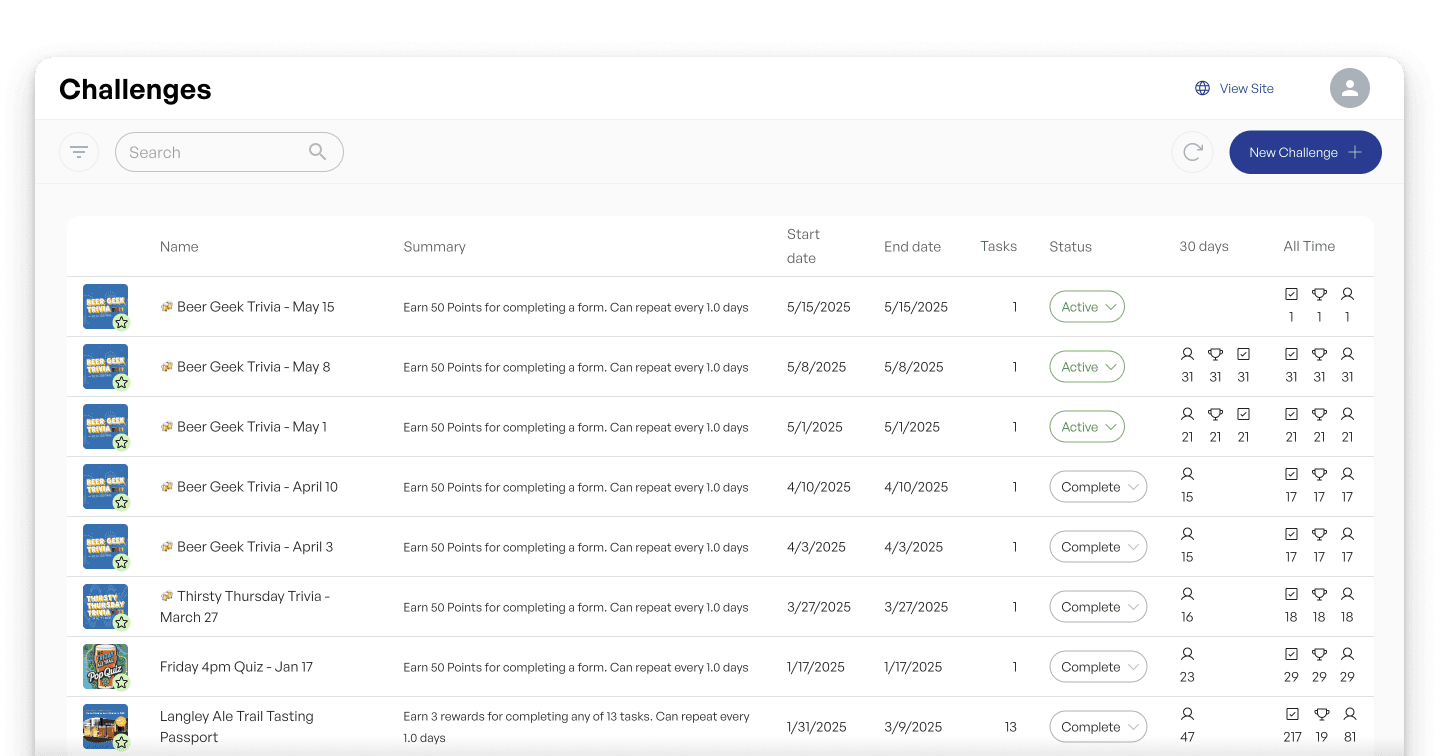 Create a challenge and add tasks that reward points for check-ins, quiz submissions, and more.