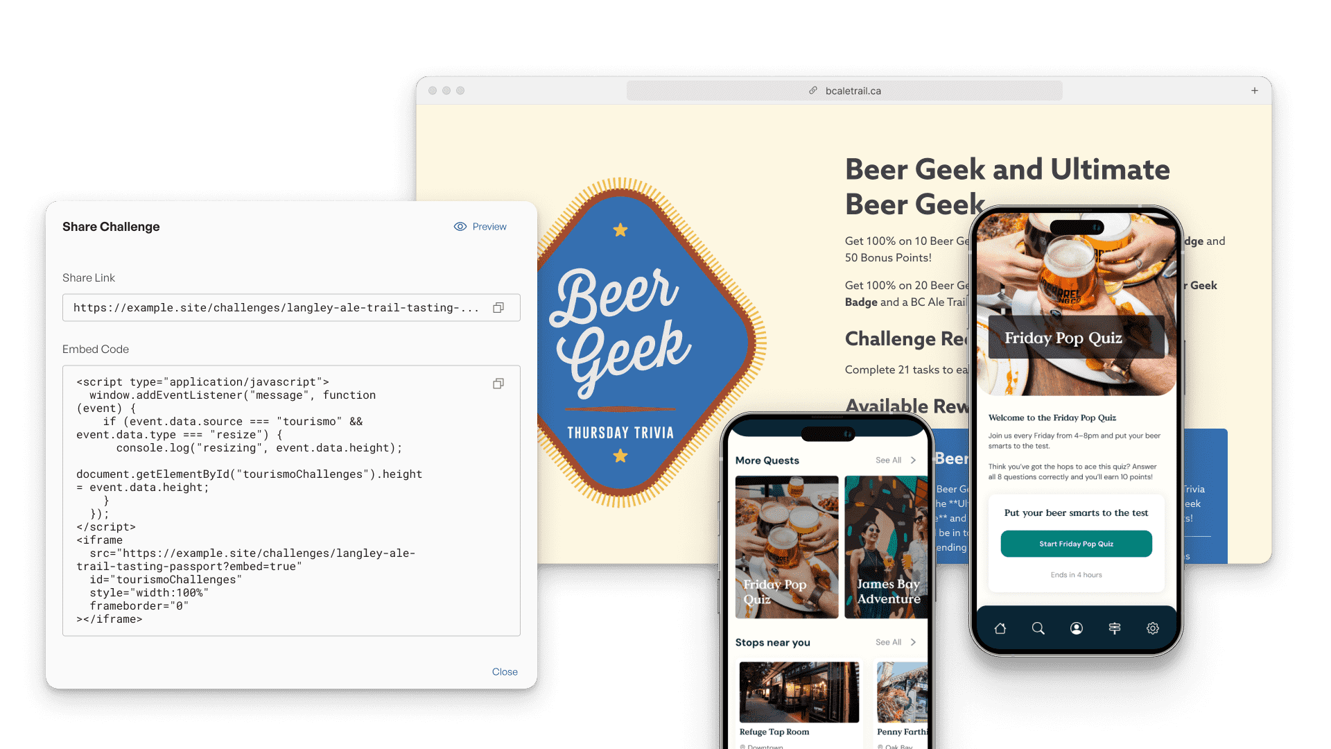 Capture every visitor’s attention from day one to trip-end. Easy-to-build quizzes and surveys incentivize exploration and secure repeat business.