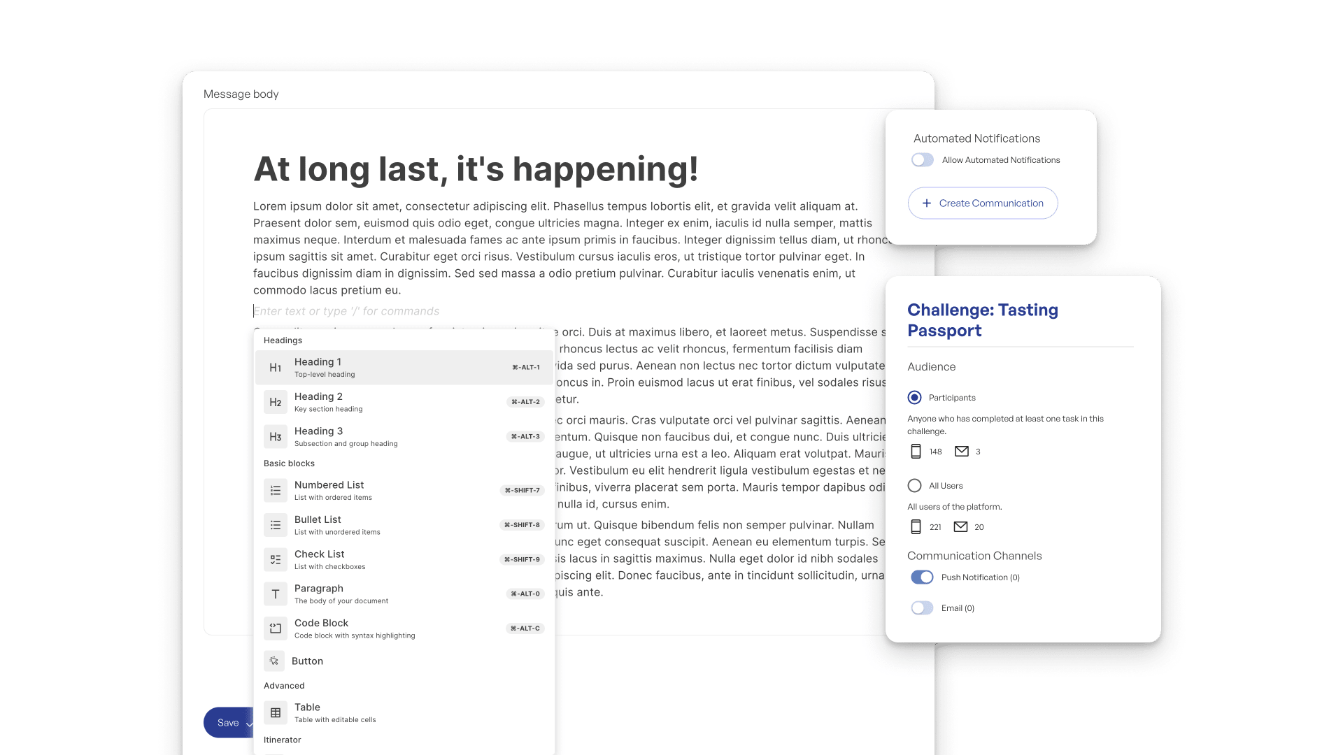 Nudge your audience toward challenges with branded newsletters, location-based app notifications, and text updates.